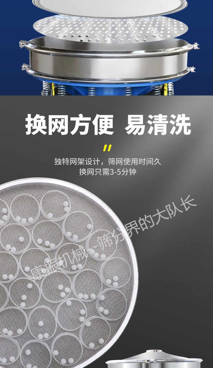 篩選范圍廣--只有系列三次元旋振篩能分選如此廣的原料范圍:任何顆粒、細(xì)粉、漿液都可以篩選。篩分細(xì)500目(28微米),過(guò)濾細(xì)5微米。網(wǎng)孔防堵塞--三次元振動(dòng)功能及自動(dòng)清理堵網(wǎng)裝置把堵網(wǎng)幾率降到小。 單層或多層分選--每臺(tái)旋振篩可選一至五層篩網(wǎng),能同時(shí)進(jìn)行二到六個(gè)等級(jí)的分選或過(guò)濾。