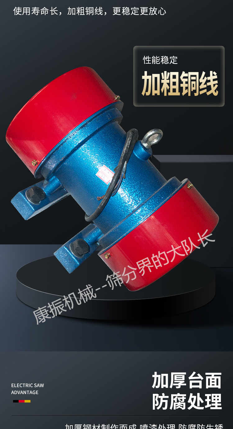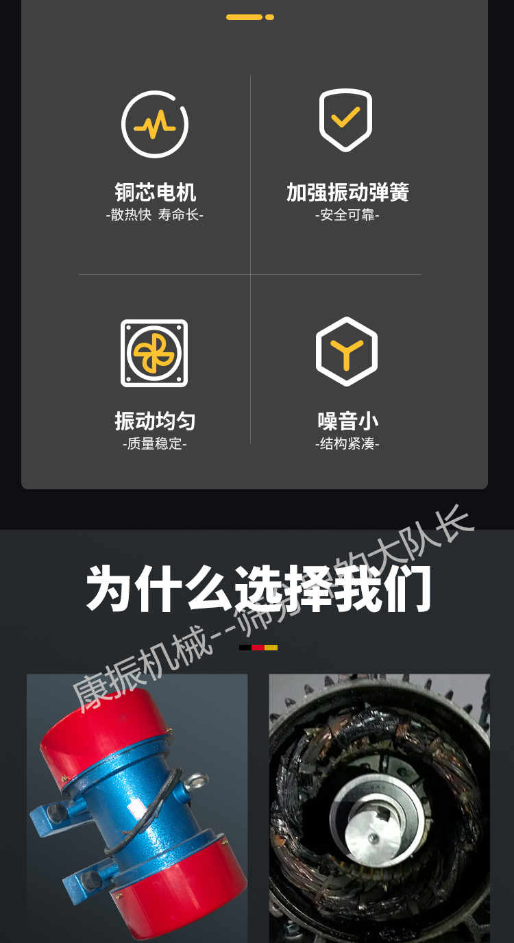 2、振蕩電機(jī)為激振源,噪聲低、耗電小、保護(hù)簡略。