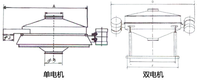 直排篩的作用原理是振動電機(jī)軸上下端的兩組偏心塊(不平衡偏心塊),將振動電機(jī)的旋轉(zhuǎn)運(yùn)動變?yōu)樗?、垂直、傾斜以及離心作用的多作用力重疊,再將這種作用力傳遞給篩面。改變上下偏心塊的相位角和可以改變激振力的大小和物料的運(yùn)動軌跡。