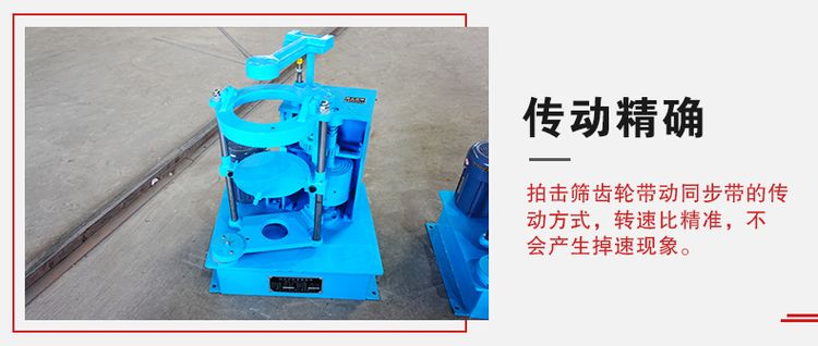 拍擊篩齒輪帶動(dòng)同步帶的傳動(dòng)方式,轉(zhuǎn)速比精準(zhǔn),不會(huì)產(chǎn)生掉速現(xiàn)象。