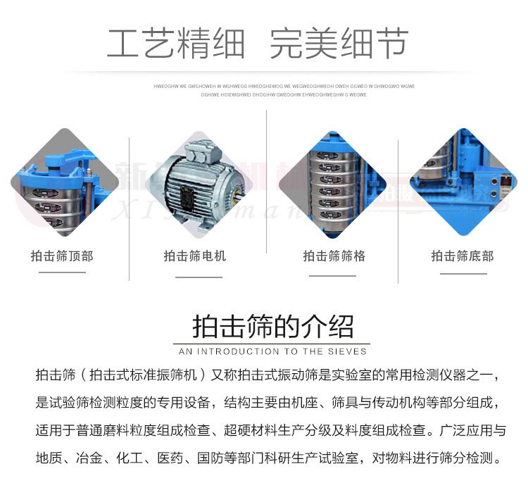 2、本機采用電子數(shù)控操作面板,數(shù)顯定時,可準(zhǔn)確方便調(diào)整每次篩分時間,并記錄每次拍擊次數(shù)及每次的搖擺次數(shù)。