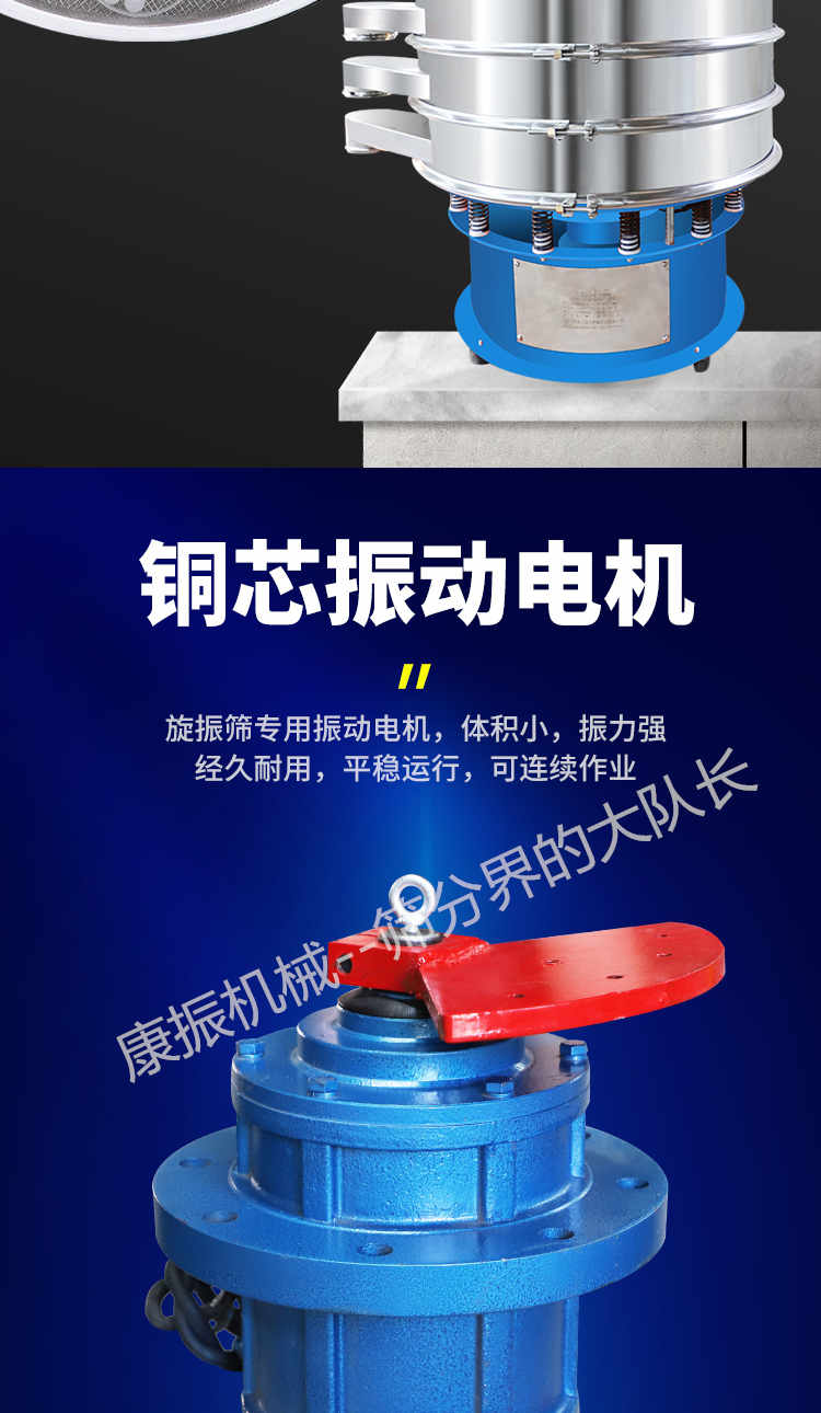 振動(dòng)無(wú)機(jī)械傳導(dǎo)—旋振篩的新型振動(dòng)源產(chǎn)生的三次元振動(dòng)強(qiáng)大而平穩(wěn),設(shè)備可安裝到任何所需位置且便于移動(dòng)。