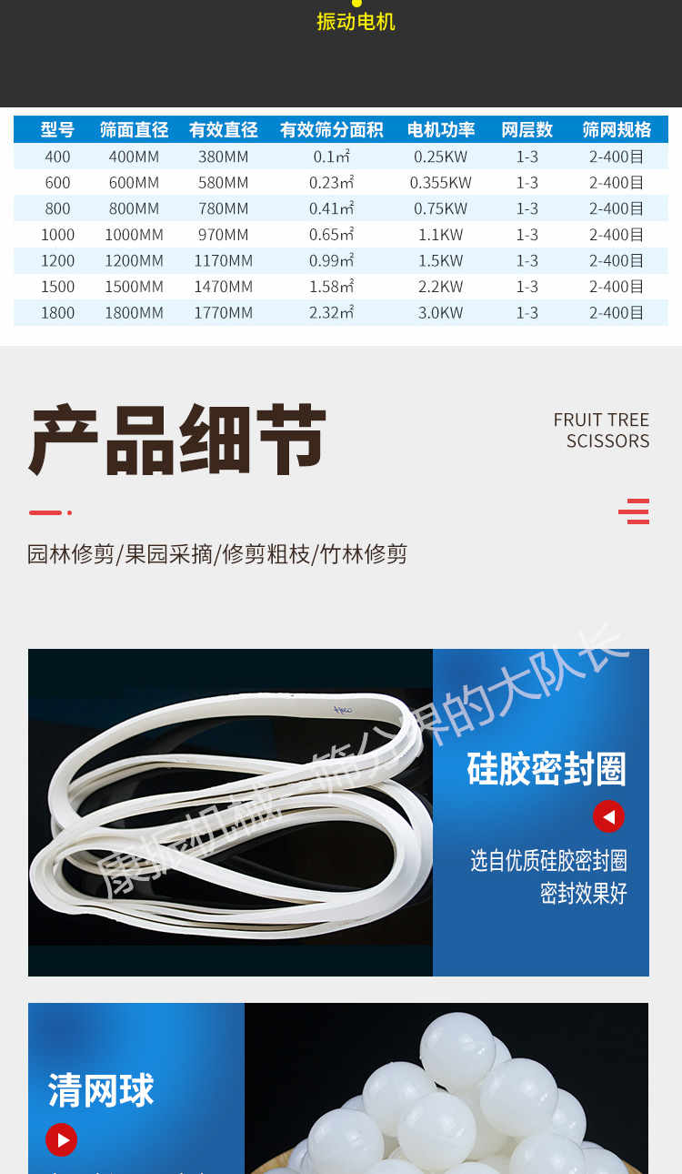篩選范圍廣--只有系列三次元旋振篩能分選如此廣的原料范圍:任何顆粒、細(xì)粉、漿液都可以篩選。篩分細(xì)500目(28微米),過(guò)濾細(xì)5微米。網(wǎng)孔防堵塞--三次元振動(dòng)功能及自動(dòng)清理堵網(wǎng)裝置把堵網(wǎng)幾率降到小。 單層或多層分選--每臺(tái)旋振篩可選一至五層篩網(wǎng),能同時(shí)進(jìn)行二到六個(gè)等級(jí)的分選或過(guò)濾。