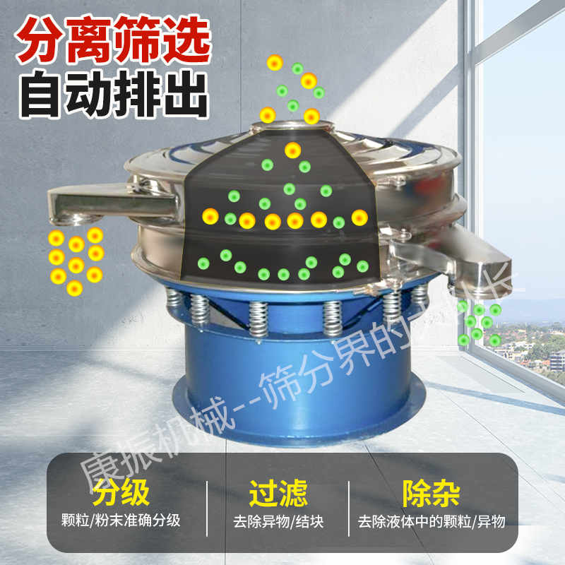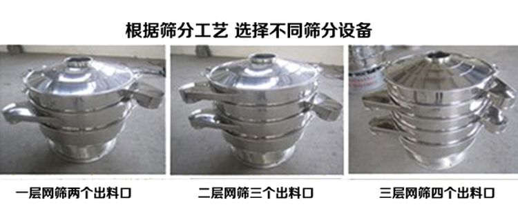 任何顆粒、粉末、粘液一定范圍內(nèi)均可篩選。篩分細(xì)至500目或0.028mm, 過濾小可至5微米。分級(jí)篩選,可篩一至五層篩網(wǎng),能同時(shí)進(jìn)行二至六個(gè)等級(jí)的分選或過濾。