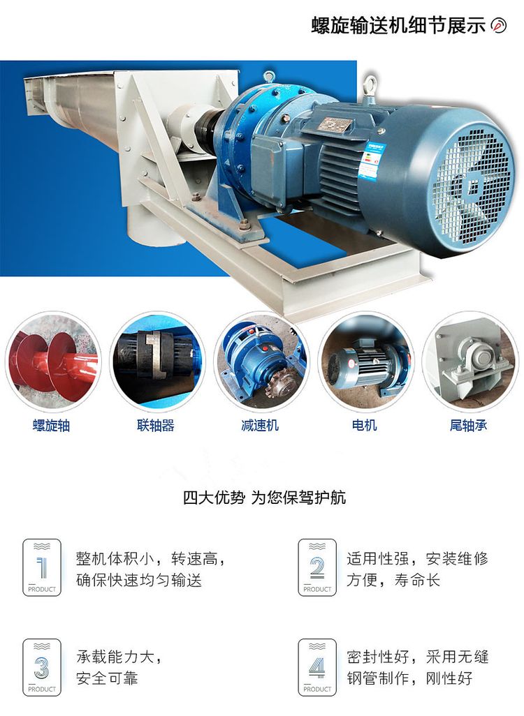5)   螺旋輸送機應(yīng)用范圍很廣,適用于輸送粉狀物料。
