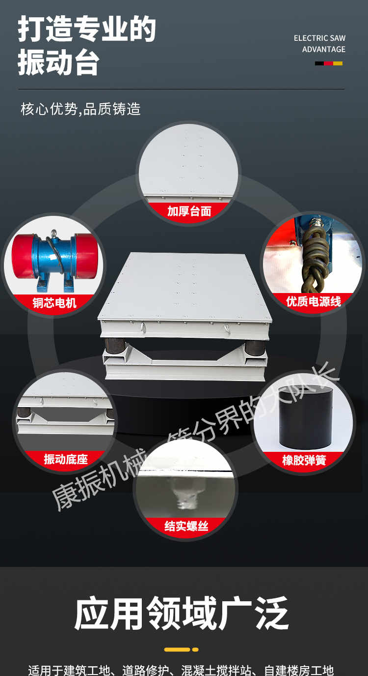 被廣泛應(yīng)用于試驗室、現(xiàn)場工地作試件成型和預(yù)制構(gòu)件震實(shí)各種板柱、梁等混凝土構(gòu)件振實(shí)成型,并應(yīng)用在冶金、模具、食物、化工、建材等行業(yè)。